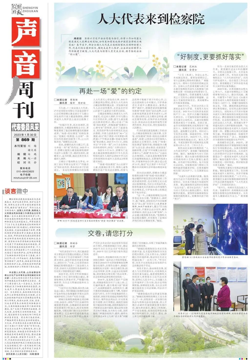 “时隔半年多,再次来调研,我感触很深。古蔺县检察院全方位、多维度展现了基层检察院建设的最新成果,‘纳爱·纽扣课堂’的特色普法,‘党旗红·检察蓝·生态绿’一体化协作机制的创新等工作,让人印象深刻。”曾娜告诉记者。